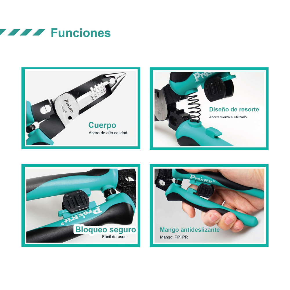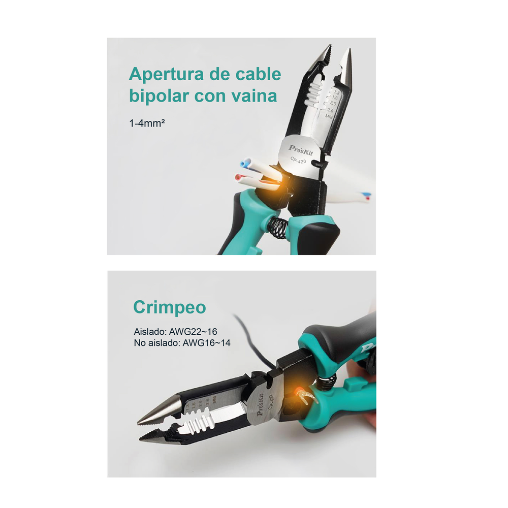 Código: CP-420Sujeta, pela, corta, crimpea y apertura cable tipo taller