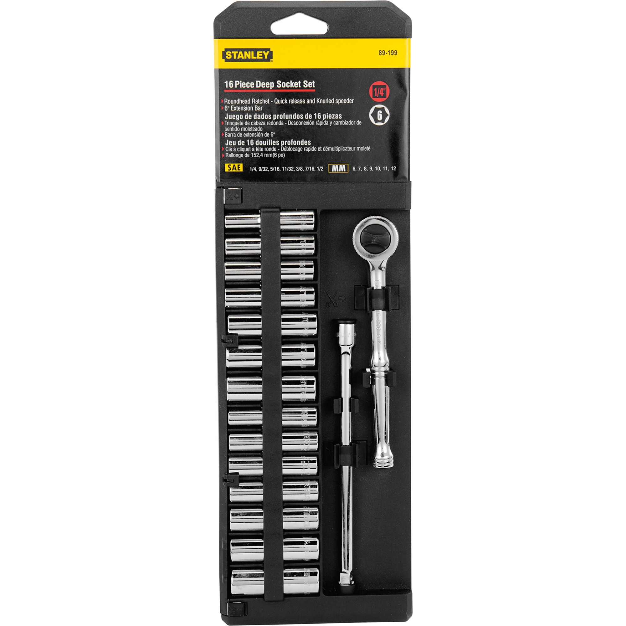 Juego de Dados 6 Puntas Encastre 1/4″ 16 Piezas Métrico/Pulgadas