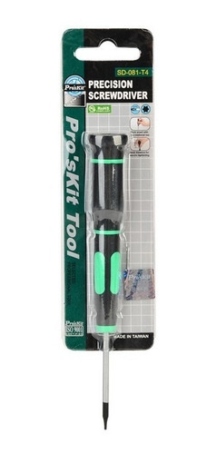 Pro’sKit SD-081-T4 es un destornillador de precisión torx (estrella de 6 puntas) con mango antideslizante y cabeza giratoria.