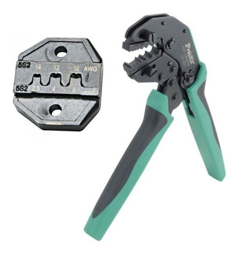 Pinza Crimpeadora Proskit CP-371 con Mordaza Proskit CP-5S2D para conectores MC4 y cable solar de 2.5 / 4.0 / 6.0 mm2 (AWG 14/12/10)