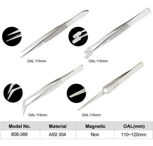 – 4 diferentes pinzas de acero inoxidable para cada necesidad