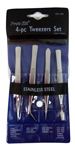 Kit 4 Pinzas Bruselas Curva Recta Acero Inoxidable Proskit