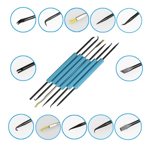 Este KIT contiene 6 herramientas para ayudar en el soldado y desoldado de piezas y componentes.