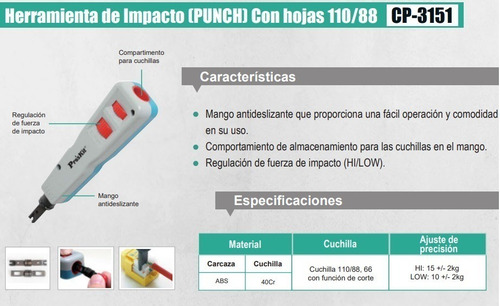 Pinza Herramienta D Impacto Impactadora Proskit P Jack Rj45