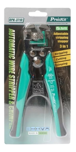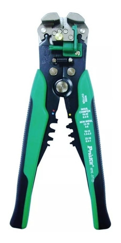 La pinza Proskit 8pk-371D² permite pelar cables de 0.20 a 6.00 mm² y apretar terminales aislados y no aislados de 22-10 AWG, así como también terminales de auto ignición de 7-8 mm. además cuenta con una perilla de micro ajuste, útil para pelar cables menores a 0.20 mm²